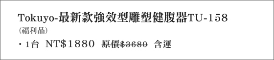 商品訊息簡述: 只要1880元(含運)即可購得【Tokuyo】原價3680元最新款強效型雕塑健腹器TU-158(福利品)1台。