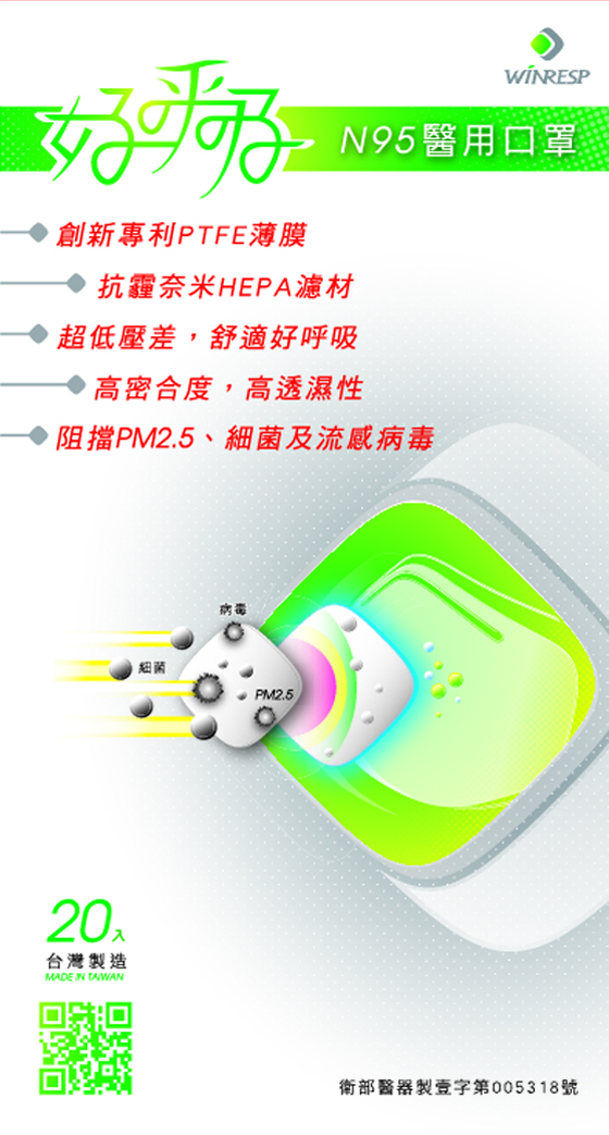 宅配獨步全球奈米薄膜技術,有效阻擋PM2.5!創新專利PTFE薄膜,高密合度,高透濕性,超低壓差,好舒適