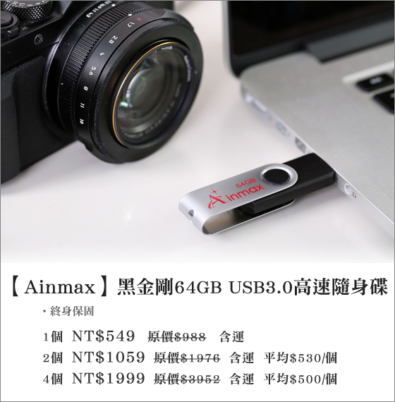 商品訊息簡述: 平均每個最低只要500元起(含運)即可購得【Ainmax】黑金剛64GB USB3.0高速隨身碟1個/2個/4個,購買即享終身保固!